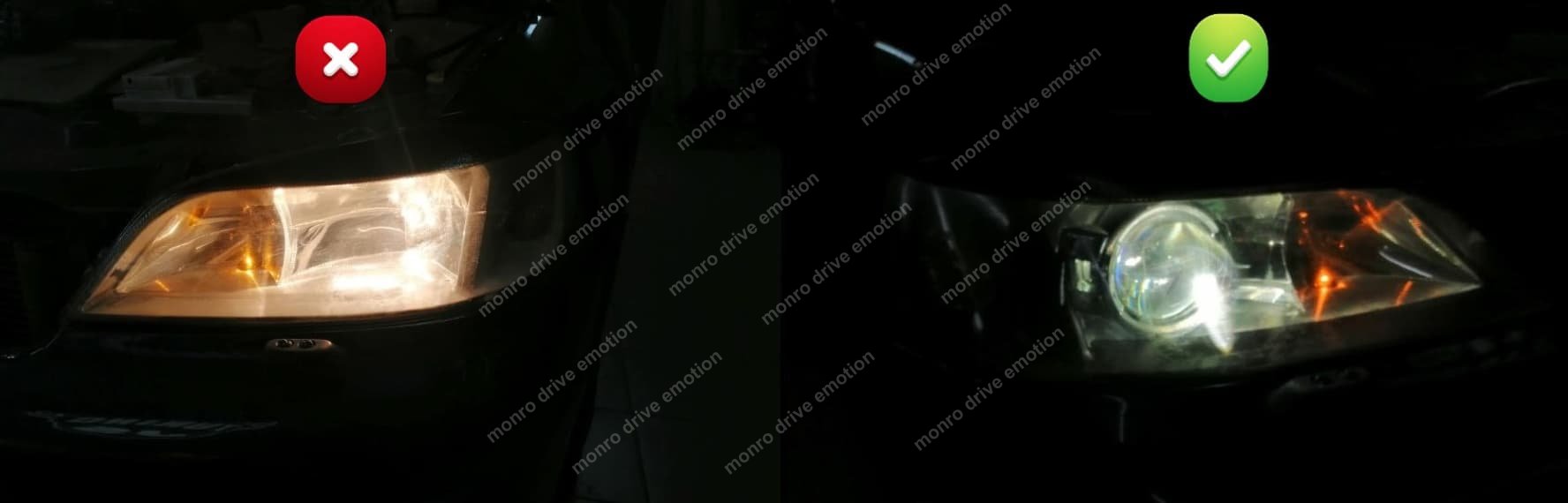 РЕЗУЛЬТАТ: свет улучшился до 1375 люксов. Увеличенная дальность света до 200 метров. Правильная светотеневая граница света. Яркий белый свет.
