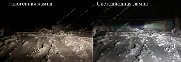 - Відсутність сліпучого ефекту, тому що світло спрямований під кутом, і надлишковий сліпуче світло просто відсутня, на відміну від галогенних або ксенонових ламп, чий світло спрямований на всі боки.